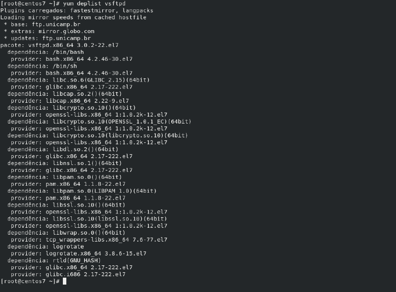 # yum deplist vsftpdPara obter informações sobre um determinado comando ou arquivo de configuração de um comando, podemos executar o seguinte comando:
