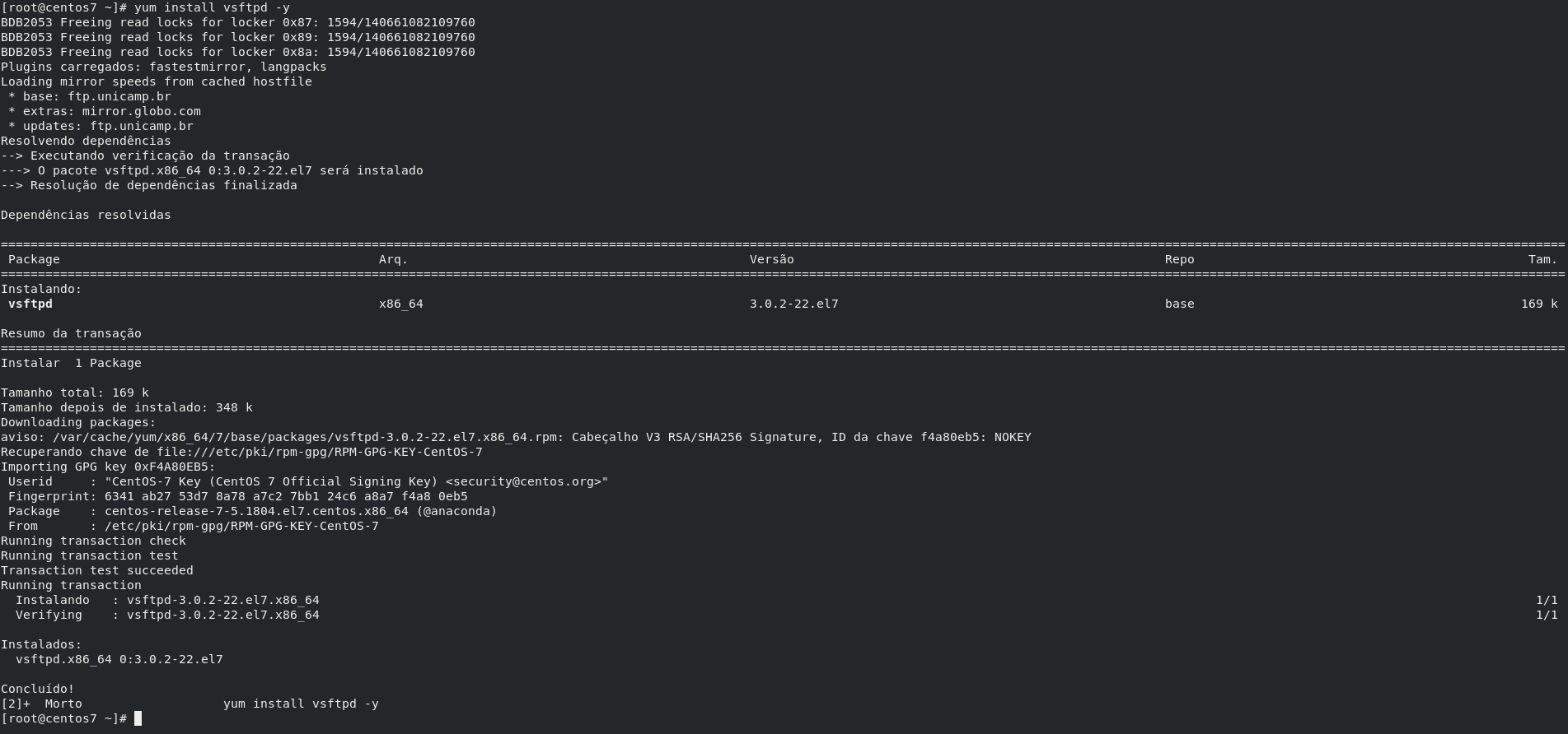 # yum remove vsftpdPara reinstalar um pacote, basta executar o comando: