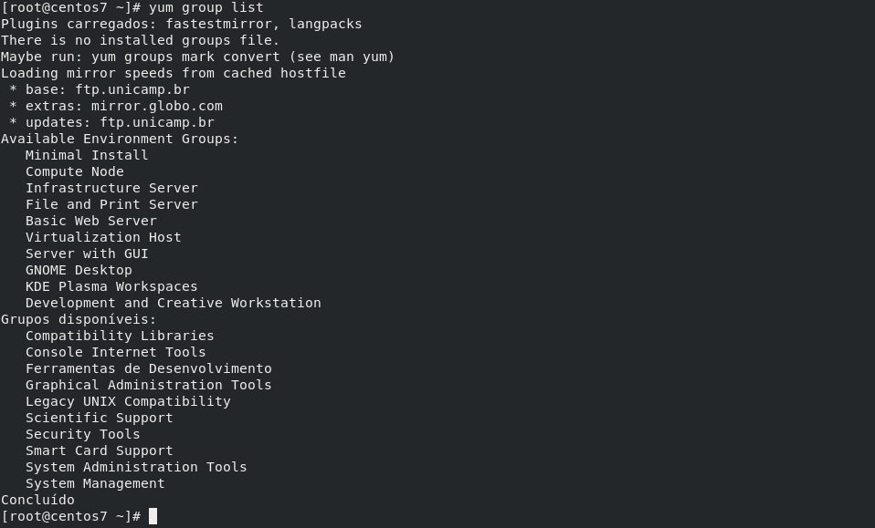 # yum group install "Web Server"Para atualizar todos os pacotes do sistema, basta executar o seguinte comando: