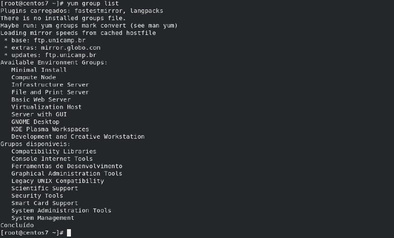 # yum reinstall vsftpdTambém podemos realizar a instalação de grupos de pacotes, por exemplo, instalando o Grupo Web Server, instalamos de uma só vez o httpd httpd-manual mod_ssl e etc.