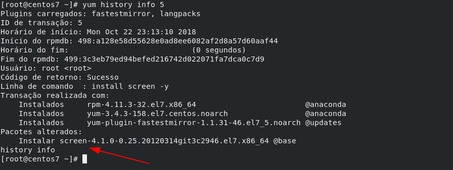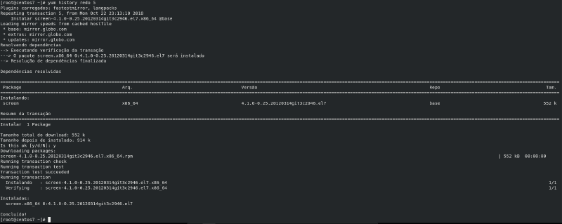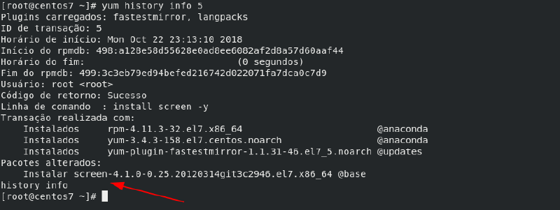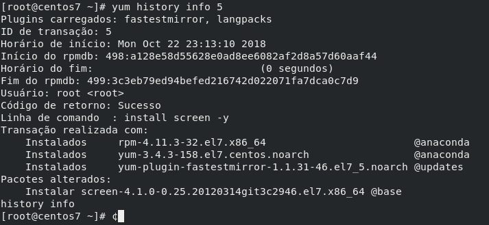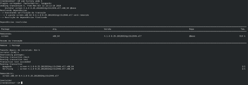 Normalmente as pessoas não sabem que o yum é capaz de mostrar com detalhes todo o histórico de pacotes que foram instalados ou removidos do sistema.