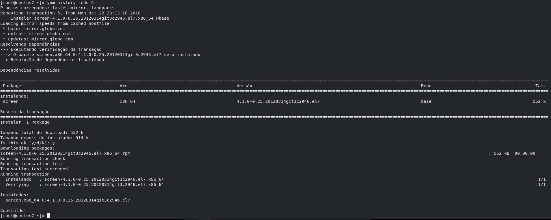 No exemplo mostrei apenas com pequenos pacotes, vendo dessa forma você pode pensar que não é tão útil essa função no yum, mas quando pensamos em muitos pacotes, esse pensamento muda.