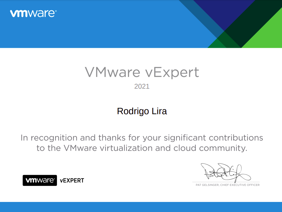 Ontem saiu o anúncio do VMware vExpert 2021.