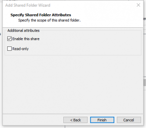 Caso deseje que esse compartilhamento seja apenas leitura, marque a caixa Read-only, no meu caso vou deixar no padrão, clique em Finish e depois em OK.