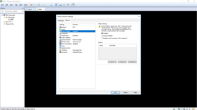 Selecione a aba Options e depois clique em Shared Folders.
