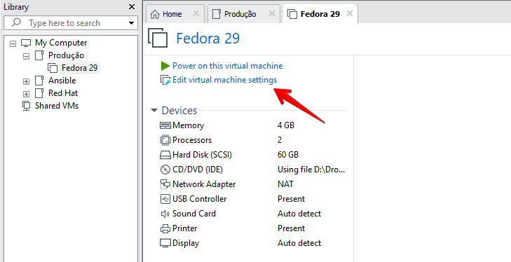 1 - Clique em Edit virtual machine settings.
