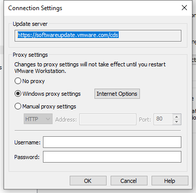 Connection Settings - configura o proxy para se conectar ao VMware Update Server, configure de acordo com a sua rede.