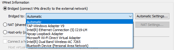 Como falei no post anterior esse tipo de conexão conecta a máquina virtual diretamente a rede externa, essa conexão é feita usando sua interface de rede ativa no momento e de forma automática por padrão.