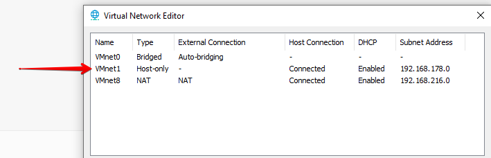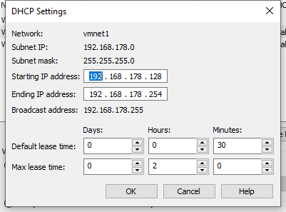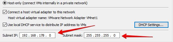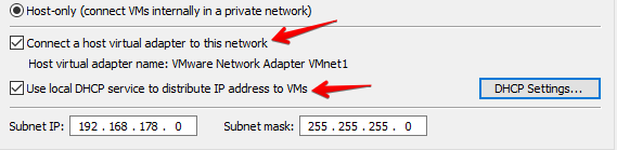 Por padrão temos um servidor DHCP virtual para este tipo de rede, podemos definir se se um adaptador virtual (VMnet1) deverá estar conectado a está rede, assim como se está rede vai usar um servidor DHCP virtual.