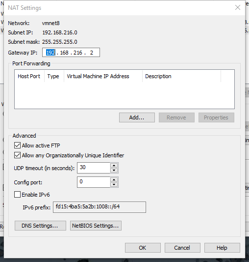 Podemos realizar configurações mais avançadas na rede tipo NAT, para isso clique em NAT Settings.