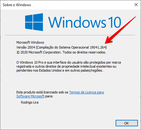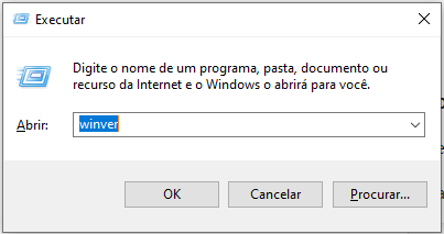 Aperte as teclas Windows + R para abrir o executar e digite winver e clique em OK.
