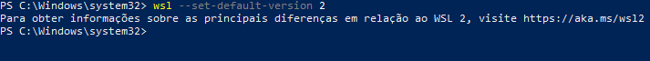 Agora vamos definir o WSL para versão 2, execute o seguinte comando: