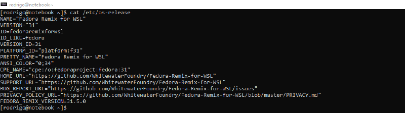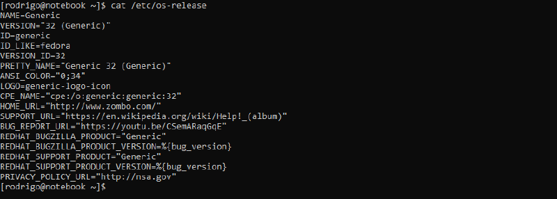 # cat /etc/os-releaseComo podemos ver na imagem acima estamos na versão 32.