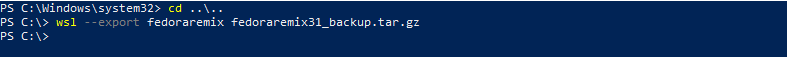 cd ..\..wsl --export fedoraremix fedoraremix31_backup.tar.gzOBS: Você pode fazer o backup em um diretório diferente.