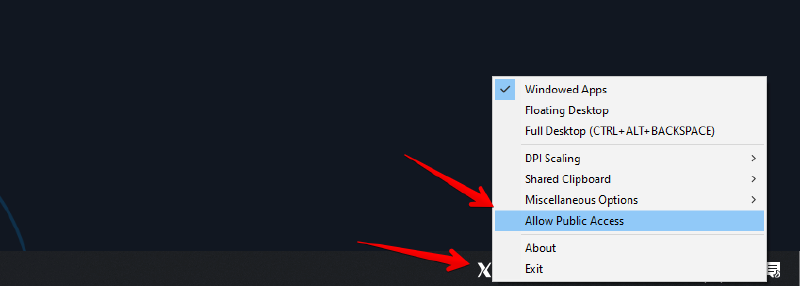 Faça a instalação dele e depois execute o mesmo, um ícone irá aparecer na Área de Notificações, clique nele e depois clique em Allow Public Access para permitir a comunicação do X410 pela rede.