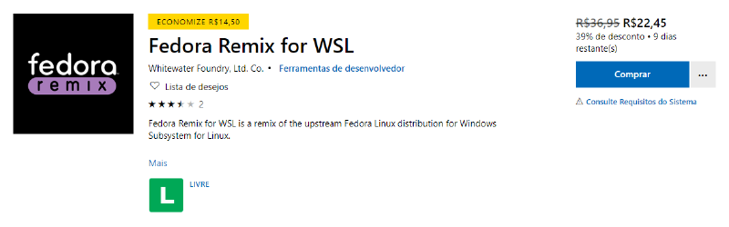 Abra a Microsoft Store e pesquise por Fedora Remix.
