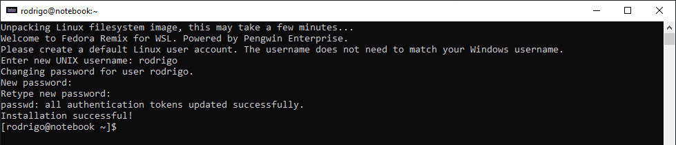 wsl --set-default-version 2Pronto, agora já temos o nosso Windows 10 com WSL2, vamos as configurações do Fedora.