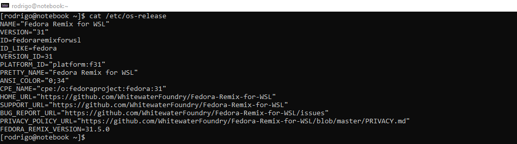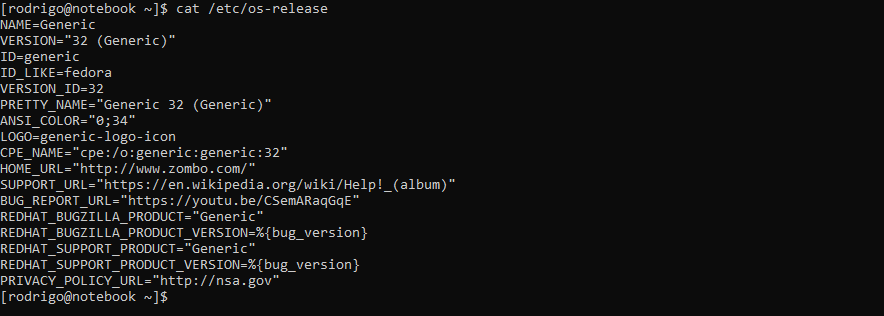 # cat /etc/os-releaseComo podemos ver na imagem acima estamos na versão 32.