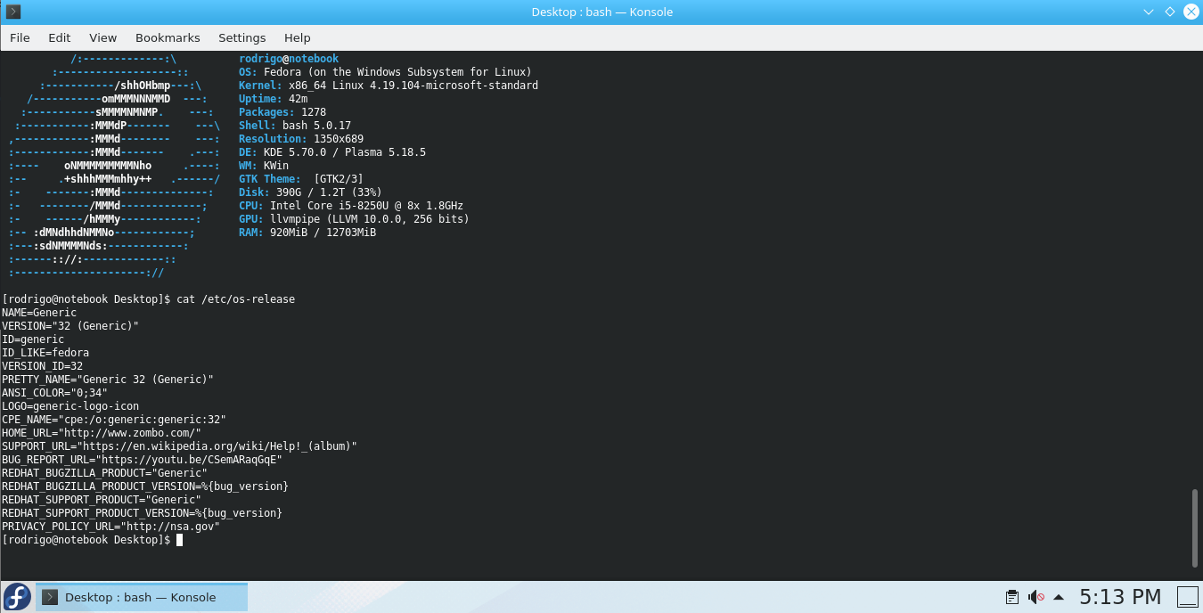 fedoraremix.exe run "if [ -z \"$(pidof startkde)\" ]; then export DISPLAY=$(cat /etc/resolv.conf | grep nameserver | awk '{print $2; exit;}'):0; startkde; pkill '(gpg|ssh)-agent'; fi;"Pronto, tudo instalado e configurado com sucesso.